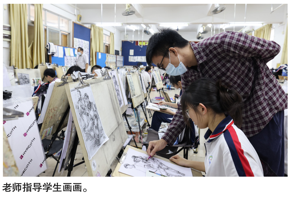翻看学校的微信公众号,一条条“喜报”更是彰显了该校的实力与水平。在2022年美术、体育、音乐、舞蹈、播音主持等专业的术科高考联考中,捷报频传。其中美术术科重本上线65人、体育术科重本上线25人,陈辛桐、罗典鸿、邝忠熙等同学的术科成绩名列全省前茅。