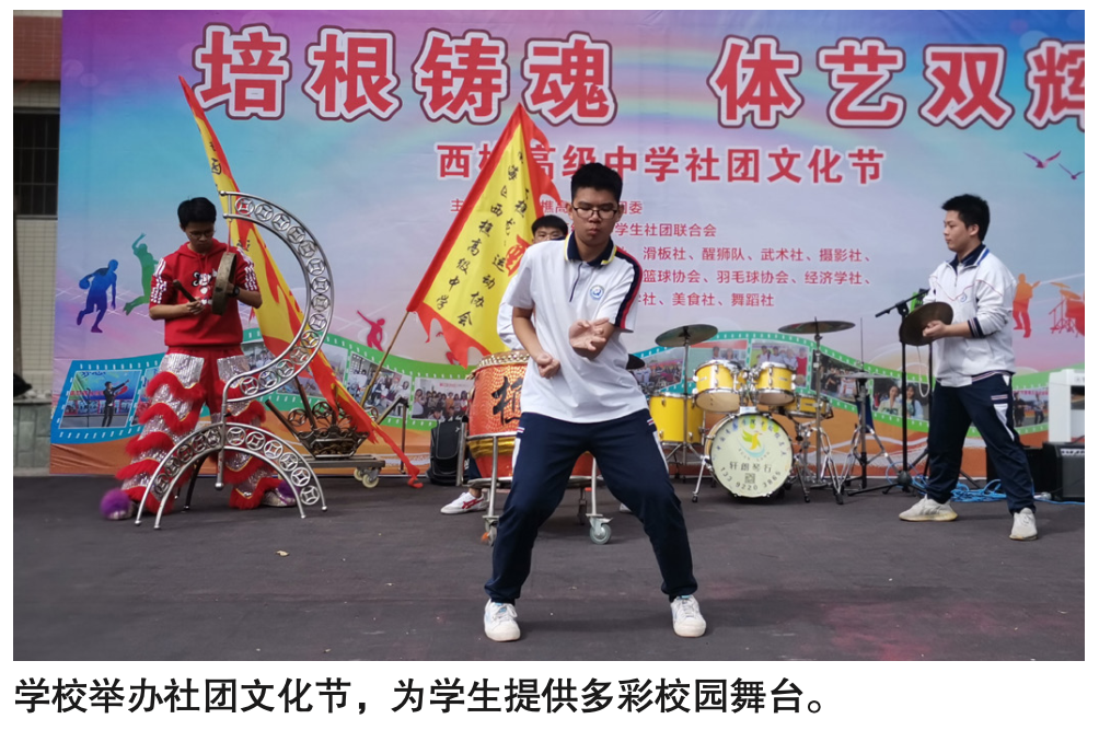 正如该生所说,学校开设的学科齐全,包括文化科及美术、体育、音乐、传媒等特长类专业课程。学校坚持因材施教,尊重学生差异,挖掘学生潜能,扬长学生个性,为学生搭建了多元发展平台,书写了西樵高中“低进高出,高进优出”的教育佳话。