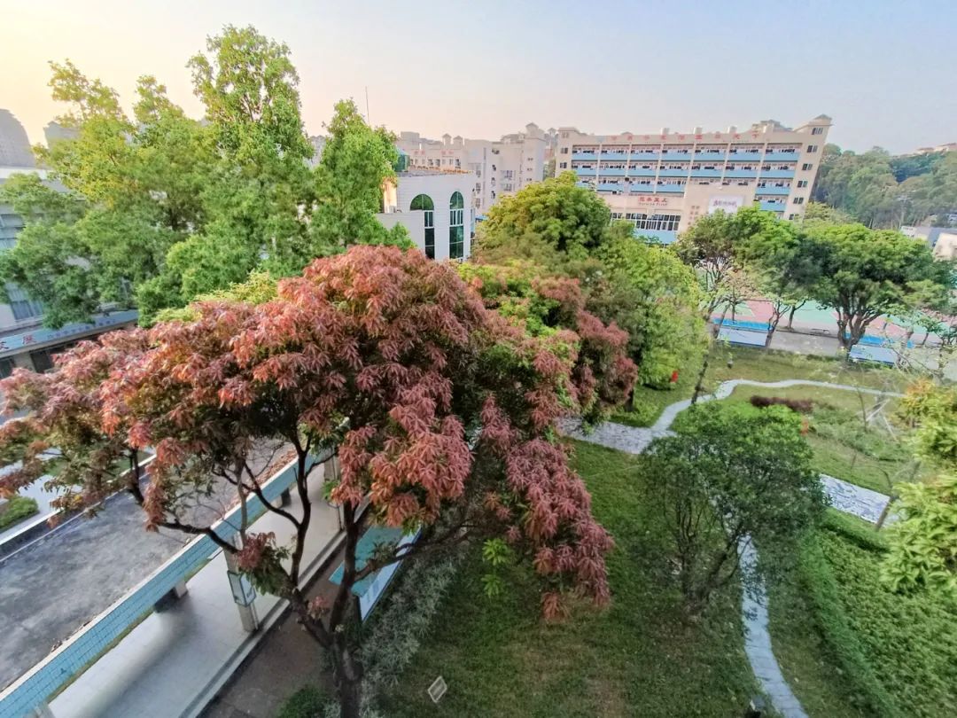这里,一步一景,怡人怡心,扑面而来的是满满的甜,满枝开遍的是满满的美,绿地在校园萦绕,芬芳在廊腰缦道充盈,她是如此浪漫而又美丽。