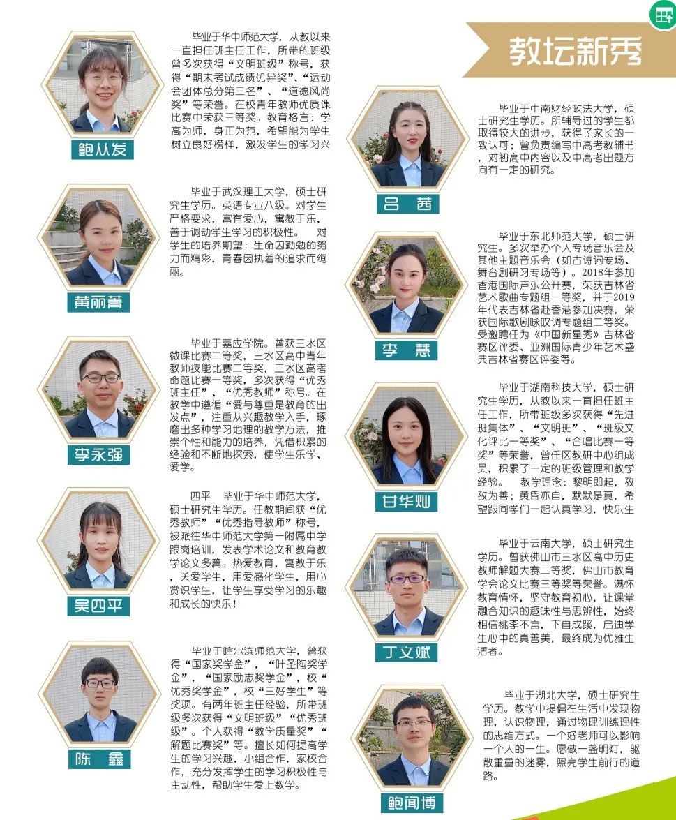 班级师源结构采用老中青教师搭配,互相配合,让学生得到全面的照顾,为他们的未来保驾护航。