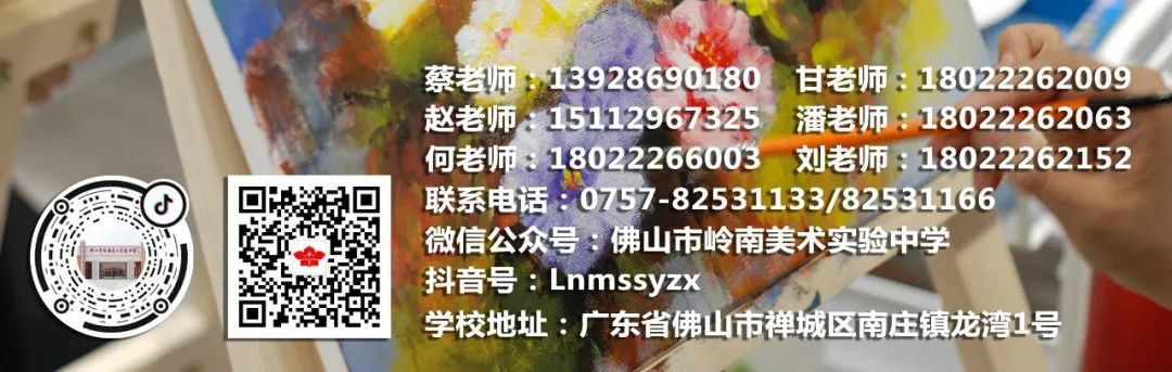 1、关注微信公众号“佛山市岭南美术实验中学”