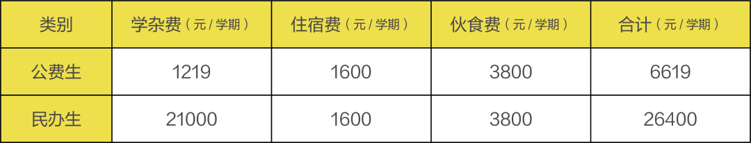 备注:服务性收费和代收费按实际开支收取。宿舍标准:设有双淋浴室、双洗手间、芬兰实木床。