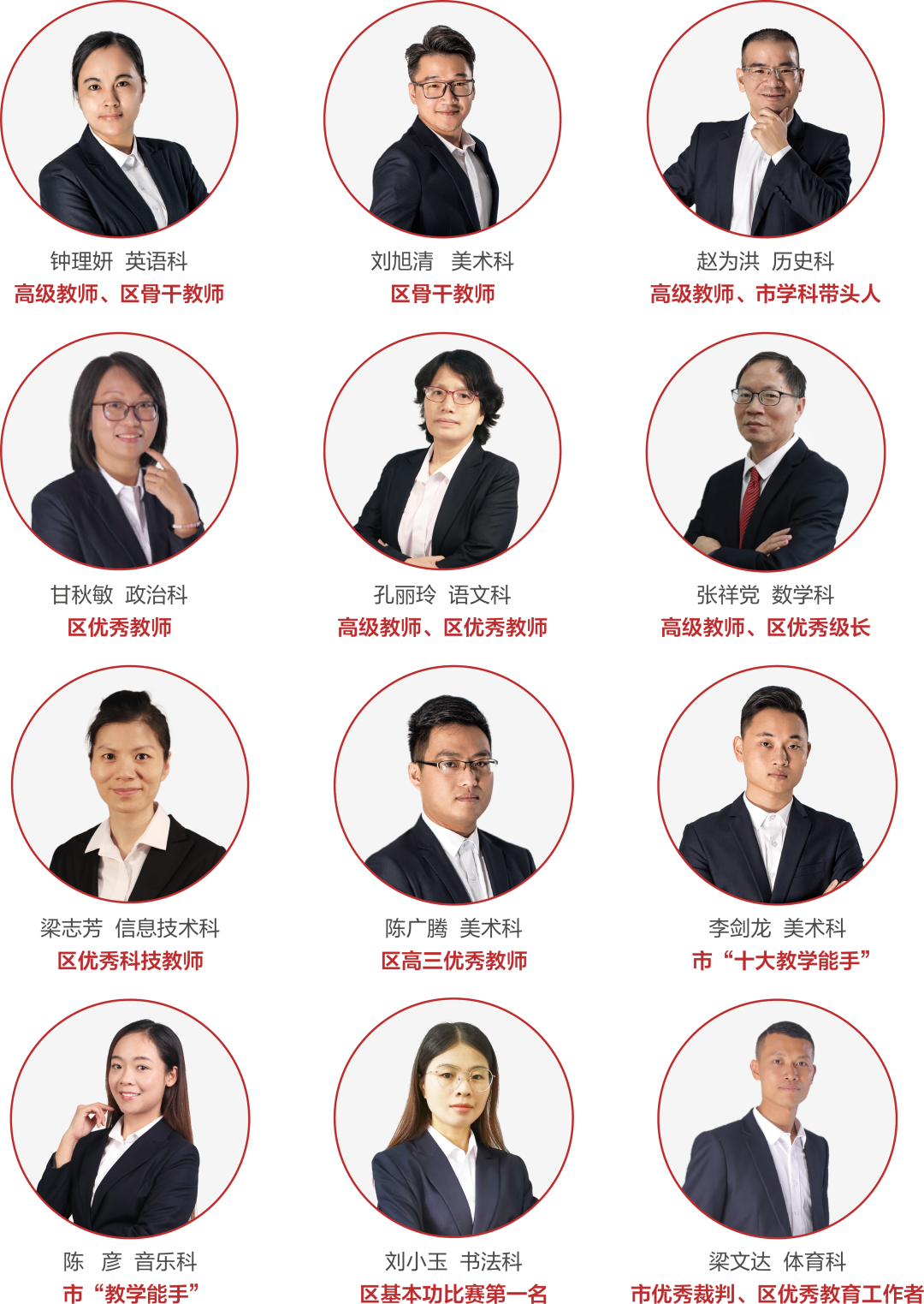 岭南美中组建了以中央美院、清华美院优秀毕业生为龙头,九大美院优秀毕业生为主体的艺术专业专职教师队伍,以及以省、市、区学科带头人为龙头,骨干教师为主体,熟悉美术、书法生特点的高水平文化科教师队伍,为岭美学子的未来保驾护航。