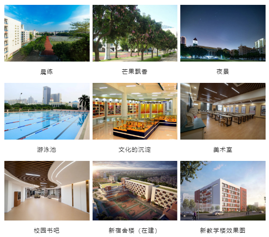 近半数教师有研究生学历,有正高级教师1人、高级教师60余人、省特级教师2人、省特支计划名师1人、广东省名班主任1人。还有一大批南粤优秀教师、市区学科带头人、市区骨干教师、名教师(校长)工作室主持人等专家级教师。教学场所均配置标准希沃平台,课室和宿舍配置空调设备。学校启动校园文化升级工程,美丽校道,与“和”园、“礼”园相映成趣。学校正进行改扩建工程,设备设施进一步升级,学习生活环境更加优化。
