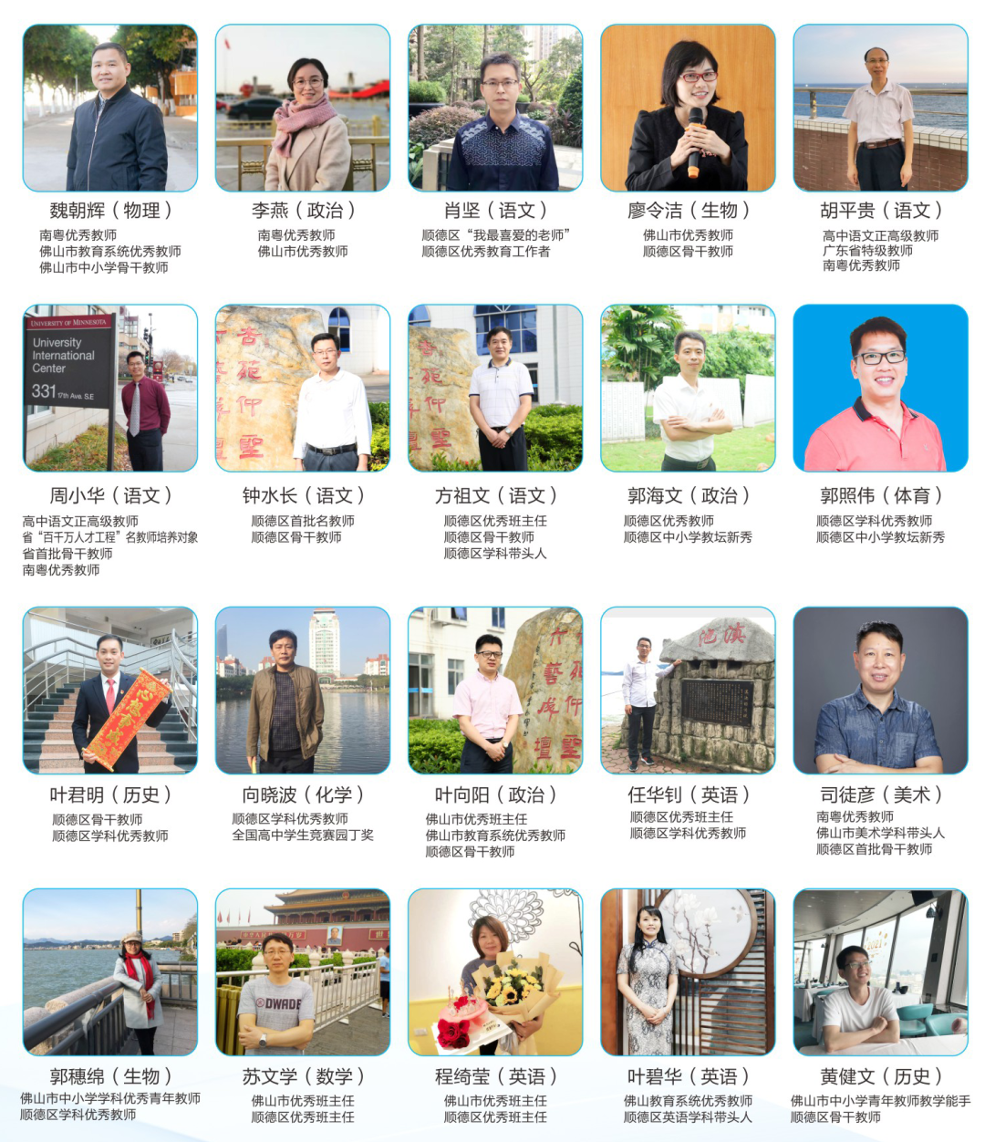 学校现有正高级职称教师2人,广东省特级教师1人,广东省骨干教师培养对象2人,南粤优秀教师5人,佛山市骨干教师4人,佛山市优秀教师8人,佛山市优秀班主任4人,佛山市学科带头人1人,佛山市优秀青年教师2人,佛山市教学能手3人,顺德区首批名教师4人,顺德区骨干教师19人,顺德区优秀教师39人,顺德区优秀班主任23人,顺德区学科带头人7人,顺德区师德标兵4人;现有顺德区特级教师工作室1个,名教师工作室2个。